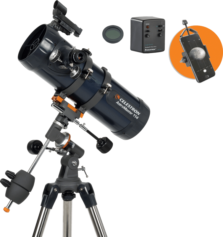 Astromaster 114EQ-MD tähtikaukoputki puhelinadapterilla ja kuusuotimella